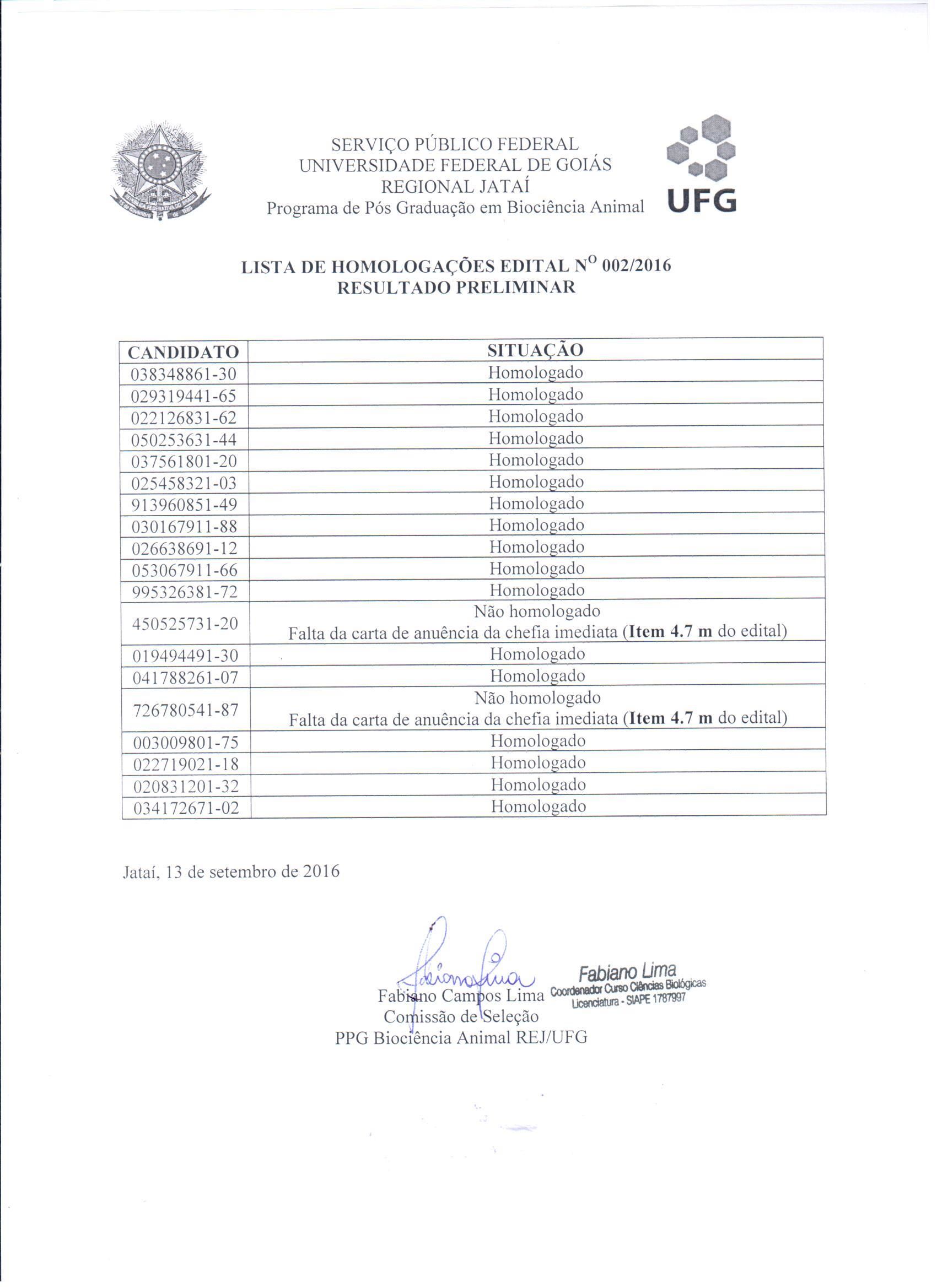EDITAL N° . 002/2016 – Programa de Pós-graduação em Biociência Animal