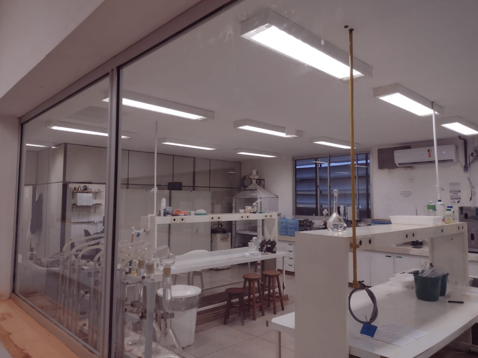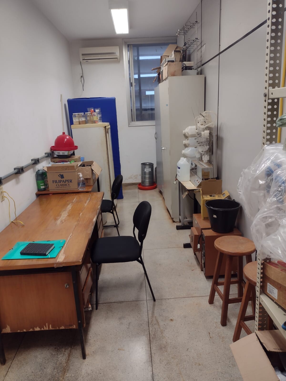 Equipamentos: 01 Ar condicionado 24000 – split / ELGIN, 01 Ar condicionado 30000 – split / KOMECO foi substituido por um Ar condicionado 30000 -split / ELGIN, 01 Ar condicionado 9000 – split / ELGIN, 01 Autoclave / PHOENIX, 01 Balança analitica 04 casas decimais / ACUULAB 210 g, 01 Balança analitica 04 casas decimais / BEL ENGINEERING 250 g, 01 Balança de precisão 02 casas decimais de 2 kg/Mettler, 01 Balança ELGIN de 15 kg, 01 Balança ToLEDO de 60 kg, 01 Banho maria AZUL, 01 Bloco digestor micro – 40 tubos / MARCONI, 01 Bomba de vacuo / odicim, 01 Bomba de vácuo /BERSE, 01 Bureta auomática digital / JENCONS, 01 Dessecador à vacuo, 01 Dessecador à vacuo, 01 Destilador de água/EDUTEC, 01 Destilador de nitrogênio / MARCONI, 01 Digestor de fibras – 6 baterias / MARCONI, 01Estufa de ventilação forçada BIOPAR / GRANDE, 01 Estufa de ventilação forçada BIOPAR / PEQUENA, 01 Estufa secagem solab / Uma porta / AZUL, 01 Extrator de fibra – MARCONI, 01 Extrator de gordura – soxhlet / MERSE, 01 Forno mufla pequena , 01 Manta aquecedora, 01 Moinho de facas tipo Wiley / VERDE, 01 moinho de facas tipo Wiley Solab, 01 Monitor /INFOWAY, 01 Seladora / SELAPLAST, 01 teclado, 01 Teclado / ITAUTEC, 01 Ar condicionado 18000 – gaveta / ELGIN, 01 Estufa de secagem e esterilização, 01 Extrator de gordura – SOLAB, 01Forno Mufla – JUNG, 01 Freezer – METALFRIO – ressalva – freezer desaparecido, 01 Peagâmetro digital portátil TECNOPON