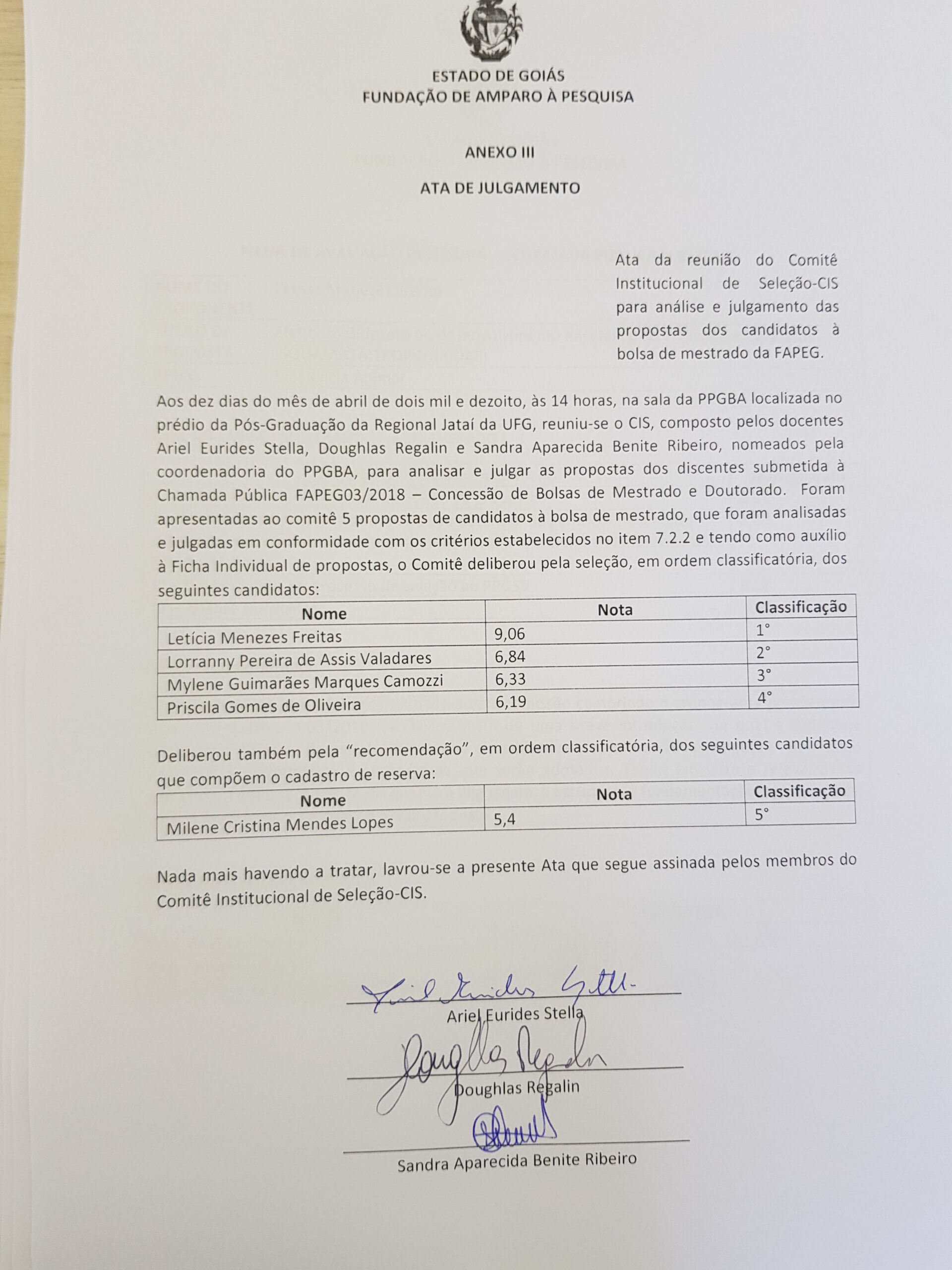 InícioEditalResultado Classificação das Propostas de Candidatos Recomendadas pelo PPGBA à Bolsa FAPEG Resultado Classificação das Propostas de Candidatos Recomendadas pelo PPGBA à Bolsa FAPEG Publicado em 16 de abril de 2018 Fapeg 2018 Resultado Classificação das Propostas de Candidatos Recomendadas pelo PPGBA à Bolsa FAPEG